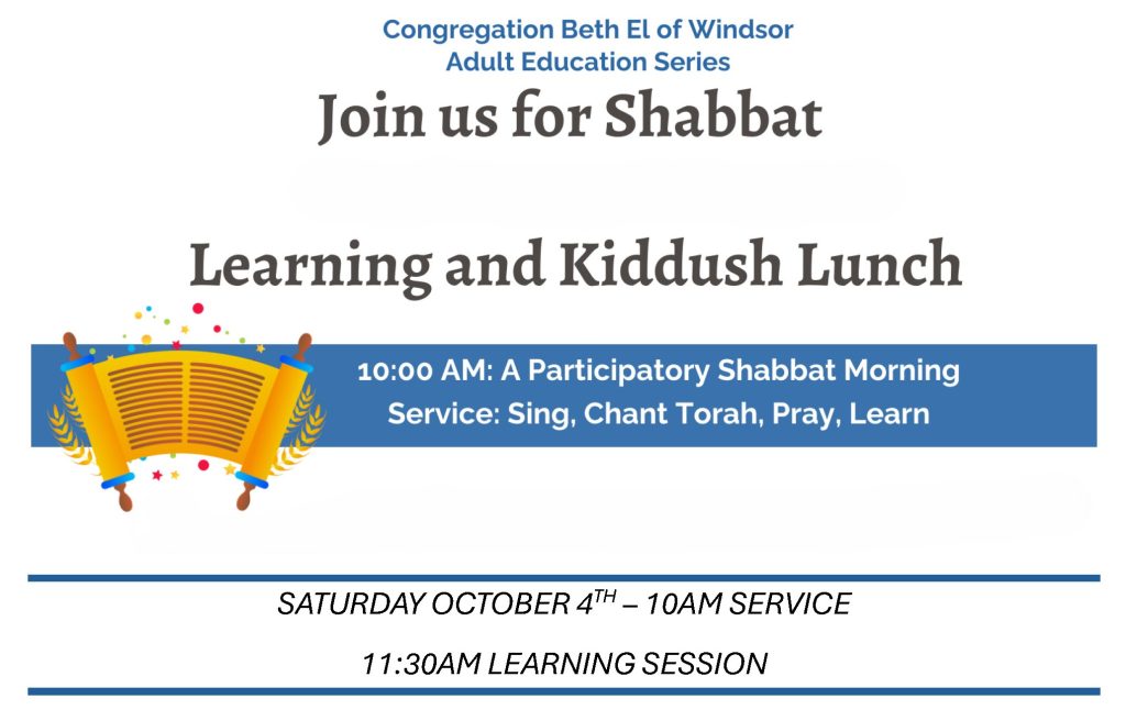 Saturday Sept 06 - 11:30AM - 1PM - Kiddush Lunch